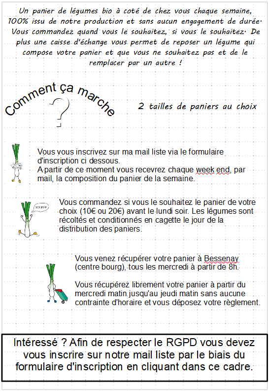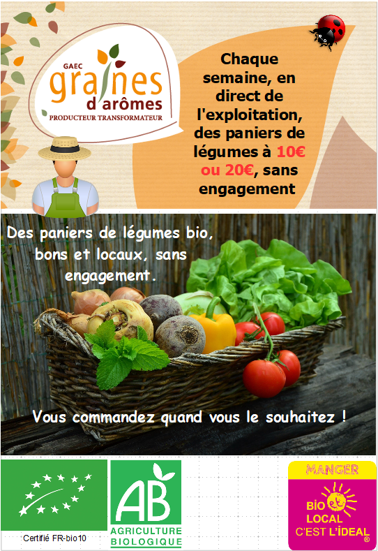Panier hebdomadaire avec engagement de 6 mois. Retrouvez aussi les productions de mes collègues en fruits, oeufs, fromages de chèvre, pains, truite, huile d'olive, agrumes de Corse...